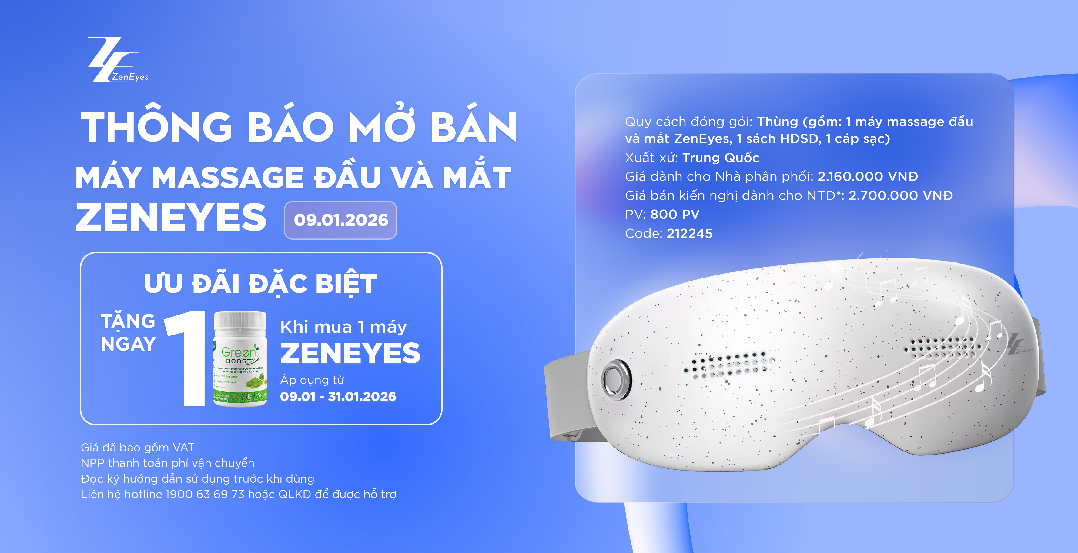 Và để sự thư thái trọn vẹn hơn, CFVN gửi tặng thêm ưu đãi đặc biệt: 1 hũ trà diệp lục thảo mộc Green Boost nhập khẩu từ New Zealand khi mua 1 máy massage đầu và mắt ZenEyes. Một combo hoàn hảo: “chạm” để thả lỏng cơ thể, “uống” để thư thái tinh thần.