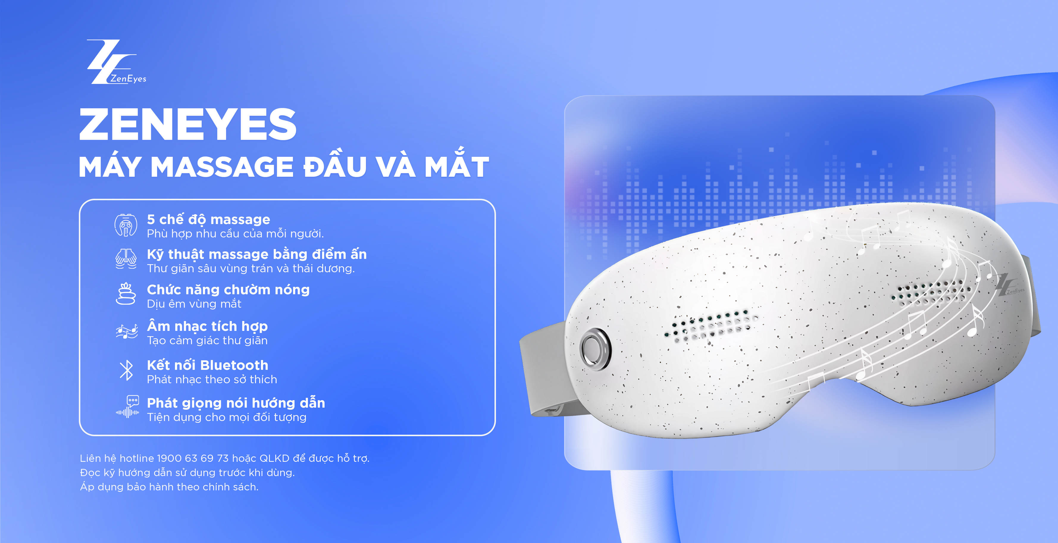 CFVN chính thức mở bán Máy Massage Đầu và Mắt ZenEyes với 5 chế độ massage bằng điểm ấn, tích hợp tính năng nghe nhạc và hướng dẫn bằng giọng nói, giúp bạn “tắt” đi những bận rộn của cuộc sống, trả lại cảm giác thư thái nhẹ nhàng.