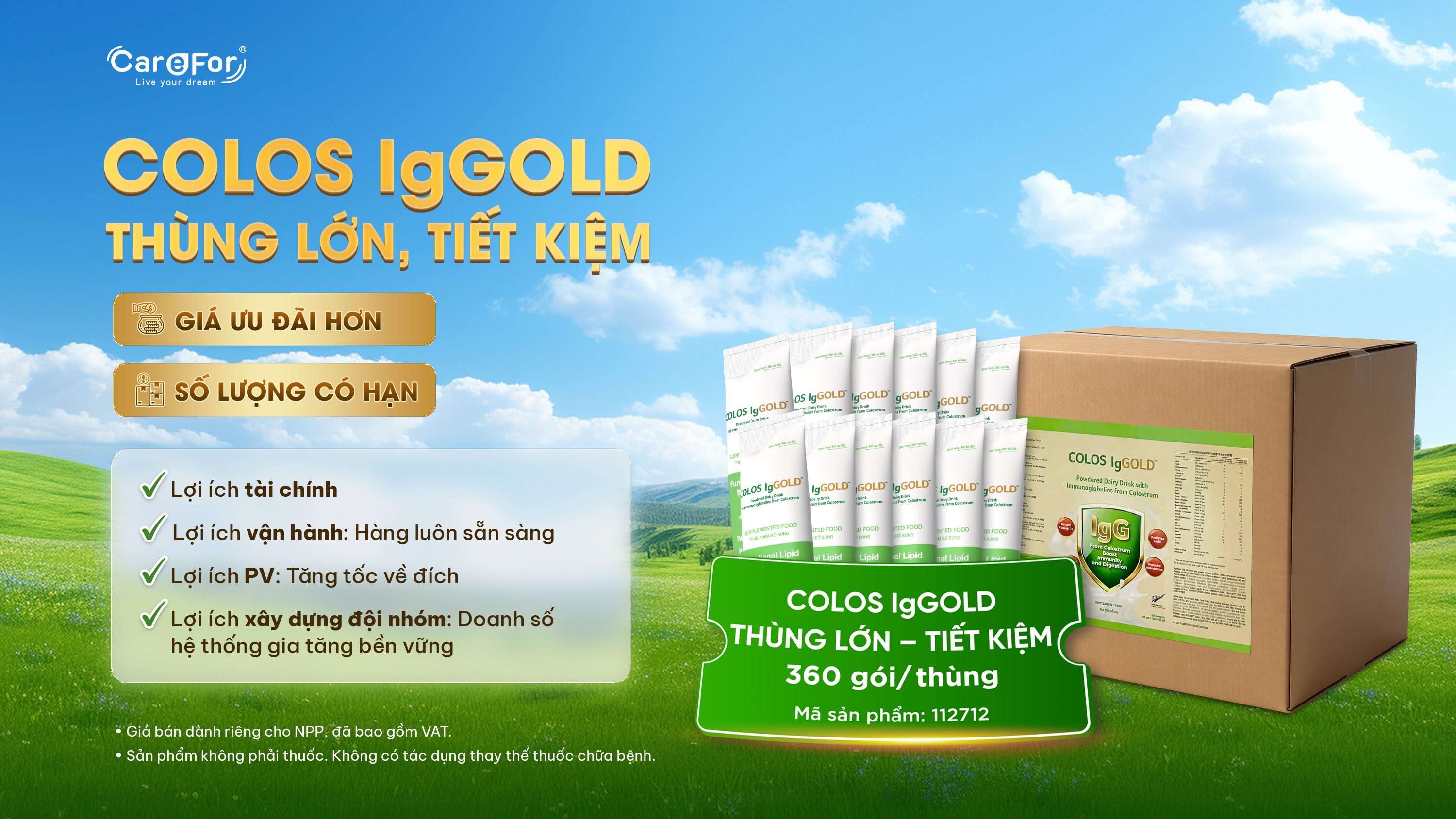 CFVN chính thức ra mắt: Colos IgGold phiên bản Thùng Lớn (360 gói), mang trọn vẹn "Lá chắn vàng" miễn dịch từ thiên nhiên New Zealand đến với mọi người. Hãy cùng nhau lan tỏa cơ hội trải nghiệm sản phẩm Colos IgGlod !!!